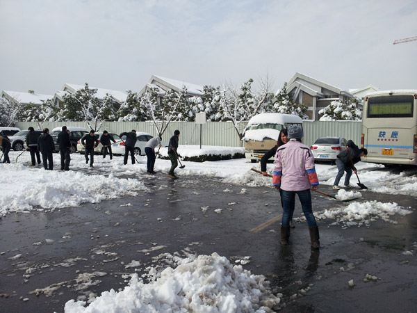 2013年2月18日夜我市迎來了今年最大一場降雪,19日早上,在行政部的組織下,公司員工冒著雪后嚴(yán)寒集體掃雪,多名領(lǐng)導(dǎo)身先士卒。同事們不畏嚴(yán)寒,揮舞著鐵鍬和笤帚,相互配合,一點(diǎn)點(diǎn)地將積雪和冰層鏟起堆放路邊,在歡聲笑語中掃出了一條暢通的平安大道,方便了人員及車輛通行,也為公司的交通安全和正常工作提供了保障。