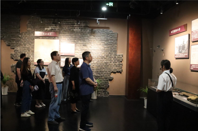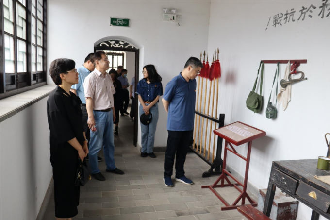 全體人員首先來到六合竹鎮(zhèn)市抗日民主政府舊址。1939 年8月,新四軍五支隊(duì)在羅炳輝司令員的率領(lǐng)下挺進(jìn)竹鎮(zhèn),開辟了以竹鎮(zhèn)為中心的抗日根據(jù)地,自此六合地區(qū)的抗日烽火在這里燃燒起來。竹鎮(zhèn)市抗日民主政府是南京地區(qū)最早建立的抗日民主政權(quán)和人民政權(quán),一張張泛黃的圖片、一件件將士們在戰(zhàn)場使用過的子彈、衣物,全體人員認(rèn)真聆聽工作人員的講解,仔細(xì)閱讀了紀(jì)念館內(nèi)的相關(guān)材料,對英雄先烈們當(dāng)時在極其艱苦的條件下,團(tuán)結(jié)和領(lǐng)導(dǎo)各界軍民進(jìn)行抗日支前運(yùn)動,有力地配合了新四軍抗日軍事斗爭的事跡有了完整的認(rèn)識。