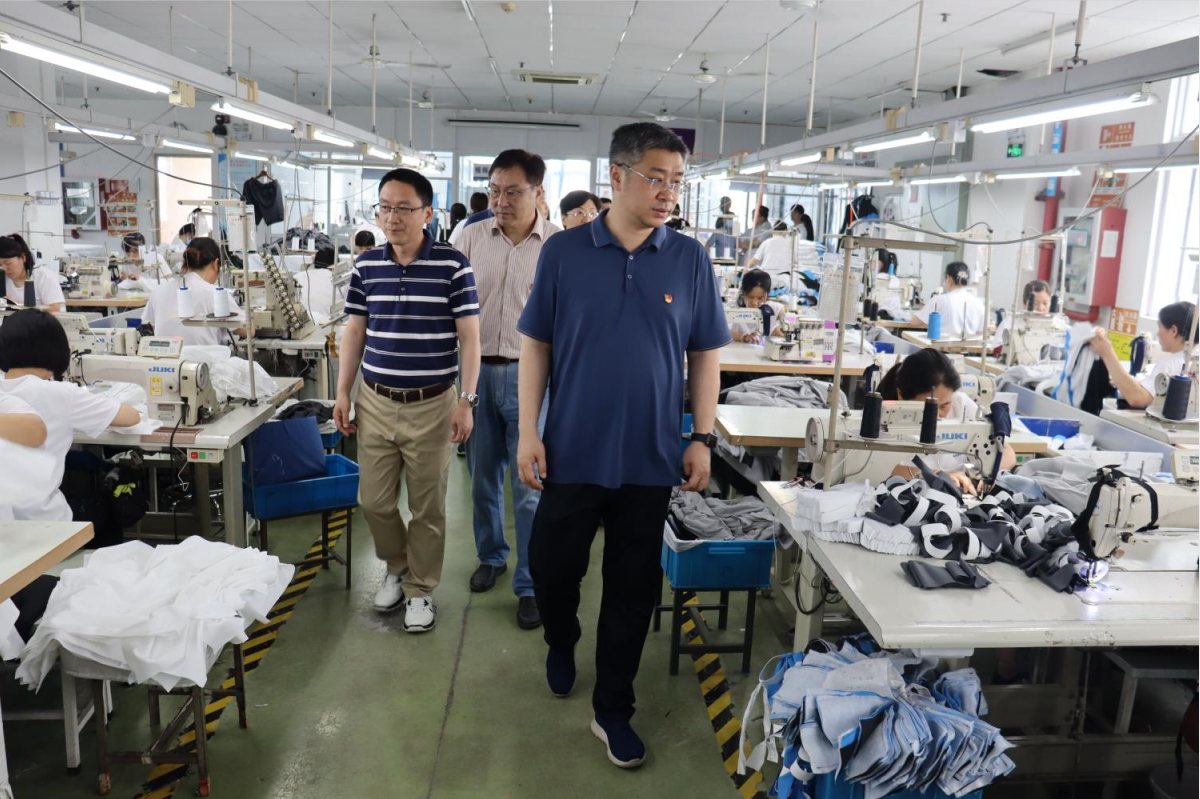 隨后,全體人員前往公司所屬江蘇海企寶德實(shí)業(yè)有限公司參觀,主要領(lǐng)導(dǎo)對安全生產(chǎn)工作進(jìn)行了檢查。自2019年8月起,寶德生產(chǎn)基地逐步有序推行各部門精益化生產(chǎn)改造,通過精細(xì)化、科學(xué)化管理實(shí)現(xiàn)“管理出效益、變革謀發(fā)展”的目標(biāo),穩(wěn)步推進(jìn)公司“工貿(mào)技結(jié)合、境內(nèi)外聯(lián)動”的戰(zhàn)略目標(biāo)。全體人員在寶德生產(chǎn)基地負(fù)責(zé)同志的帶領(lǐng)下,先后參觀了廠區(qū)裁剪車間、縫制車間、檢品車間等,并現(xiàn)場觀看了生產(chǎn)基地每月一次的工間操月度評比活動。