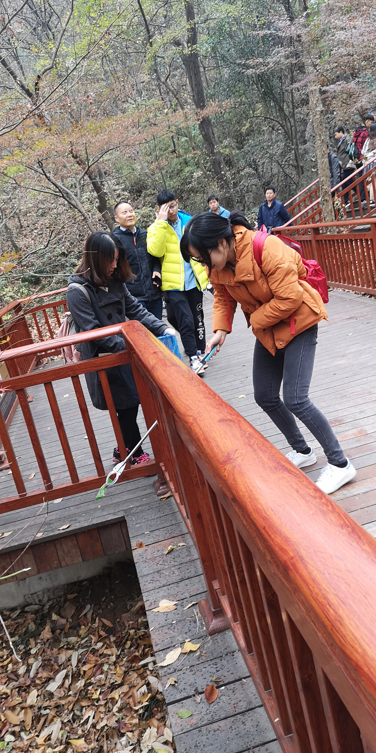 位于長江南岸的棲霞山被譽為“金陵第一明秀山”,素有“六朝勝跡”之稱。冬天的棲霞山,落葉如歌,漫山紅葉依山勢起伏,色彩濃郁,呈現(xiàn)出層林盡染的絢麗景觀。大家興致勃勃、拾階而上,每個人手中都拿著一個塑料袋,一路走,一路撿,沿途將散落在路邊、綠化叢里的礦泉水瓶、果皮、紙屑及煙頭等各種垃圾一并撿起。在撿垃圾的同時大家一路上歡聲笑語,交流感情,在用實際行動踐行環(huán)境保護意識的同時,也讓自己的心情放了個假。待到活動結(jié)束集合時,不少人手中都提著滿滿的一袋垃圾,大家相互比較著自己的勞動“成果”,雖然都氣喘吁吁,但是沒人喊累,大家紛紛表示,能為環(huán)保事業(yè)做出自己的一份貢獻,讓大自然變得干凈,覺得非常值得,意義非凡。