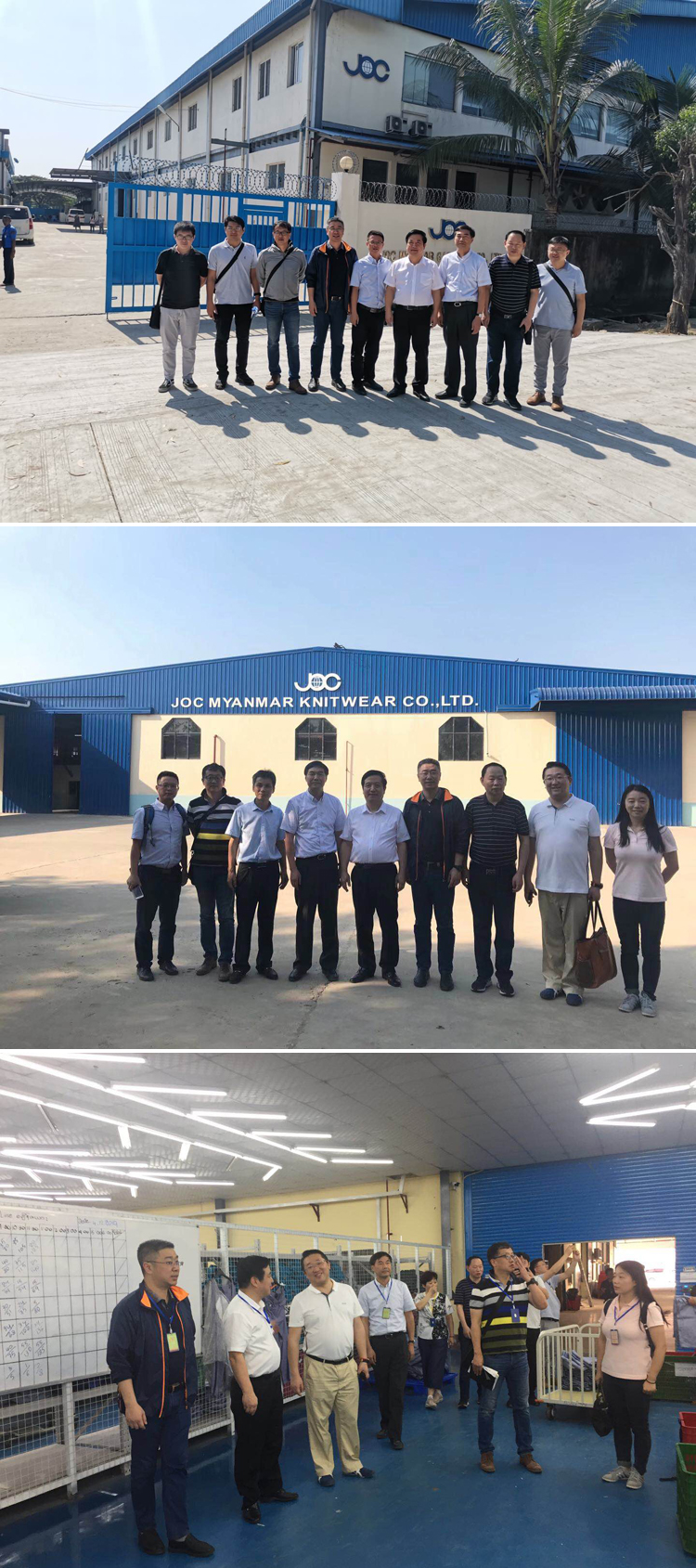 王總裁首先調(diào)研考察了我司緬甸針織廠、梭織廠以及瑞鵬公司三家生產(chǎn)基地,并通過座談交流詳細(xì)了解了生產(chǎn)基地的投資及生產(chǎn)運行情況。三家工廠產(chǎn)品定位清晰,規(guī)模效能逐步釋放,有效完善了國內(nèi)外生產(chǎn)基地互補的產(chǎn)業(yè)格局,提升了企業(yè)出口競爭力,為助推集團外貿(mào)轉(zhuǎn)型升級、提振經(jīng)營團隊信心、穩(wěn)定專業(yè)人才隊伍、吸引國內(nèi)外大客戶提供了有效保障。提出在緊跟行業(yè)發(fā)展趨勢、深耕緬甸市場的同時,要積極拓展境外經(jīng)營的新渠道,逐步探索向上游延伸,建立自身行業(yè)優(yōu)勢,發(fā)展壯大業(yè)務(wù)經(jīng)營的厚度與深度。