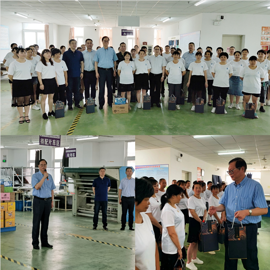 8月6日下午,集團(tuán)公司黨委書記、董事長黃宏亮赴我司下屬江蘇海企寶德實業(yè)有限公司六合服裝加工基地,慰問一線管理人員和工人。