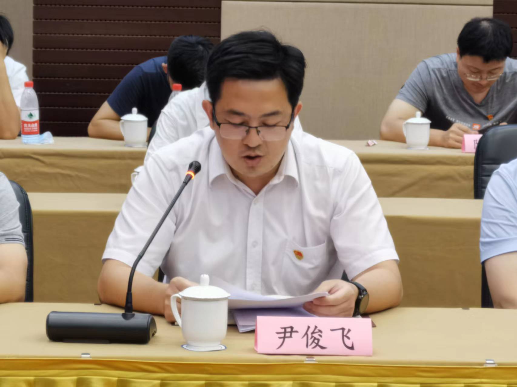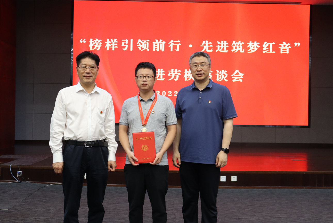 先進(jìn)勞模座談會上,集團(tuán)黨委副書記、工會聯(lián)合會主席閆國倫同志為榮獲“江蘇省五一勞動獎(jiǎng)?wù)?rdquo;的國際公司駐緬中方管理團(tuán)隊(duì)負(fù)責(zé)人汪烽同志授獎(jiǎng)。