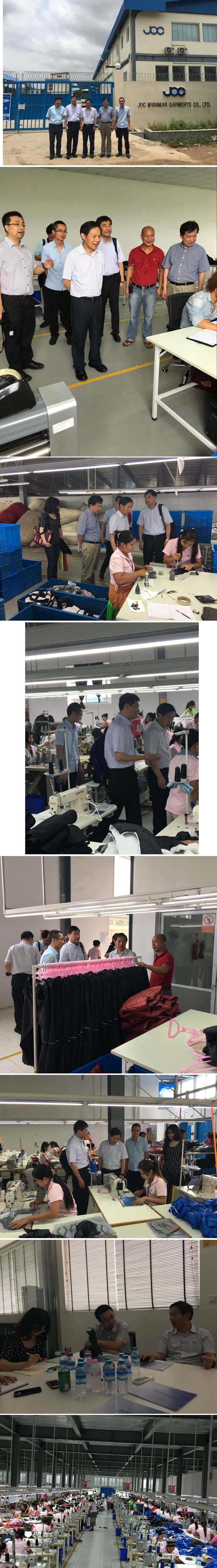 5月23日,省商務(wù)廳副廳長、省貿(mào)促會會長笪家祥在集團(tuán)黨委委員張文翔、國際公司總經(jīng)理吳應(yīng)宏等相關(guān)人員陪同下赴國際公司緬甸服裝生產(chǎn)基地考察指導(dǎo)工作。